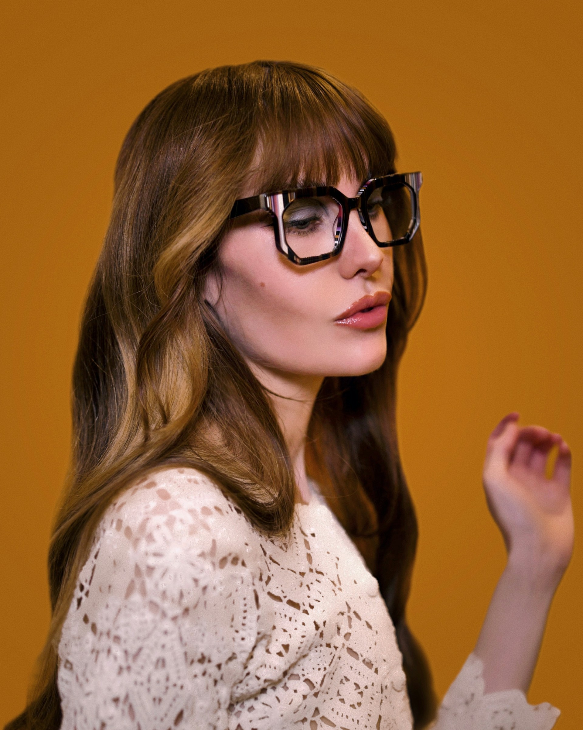 黒縁など存在感のあるフレームが調和します。